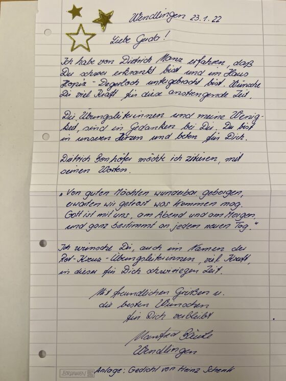 Besuche, Karten und Briefe, die Gerda in der letzten Zeit bekommen hat