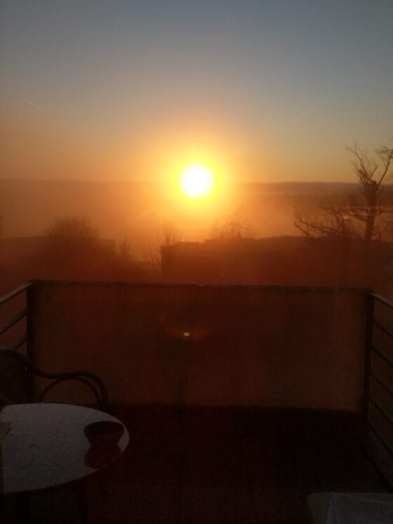 Sonnenaufgang am Neujahrstag auf dem Balkon der Palliativstation